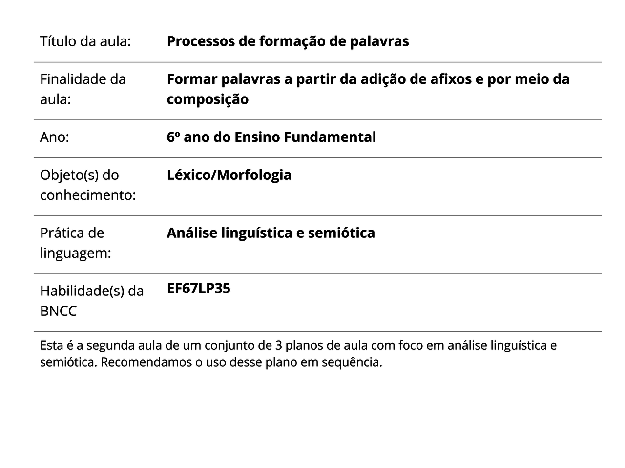Plano De Aula 6º Ano Língua Portuguesa Processos De