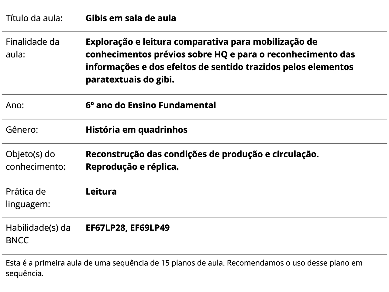 Plano De Aula 6º Ano Língua Portuguesa Gibis Em Sala