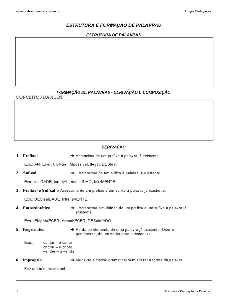 Estrutura E Formação De Palavras Page Escola De Cursos Livres