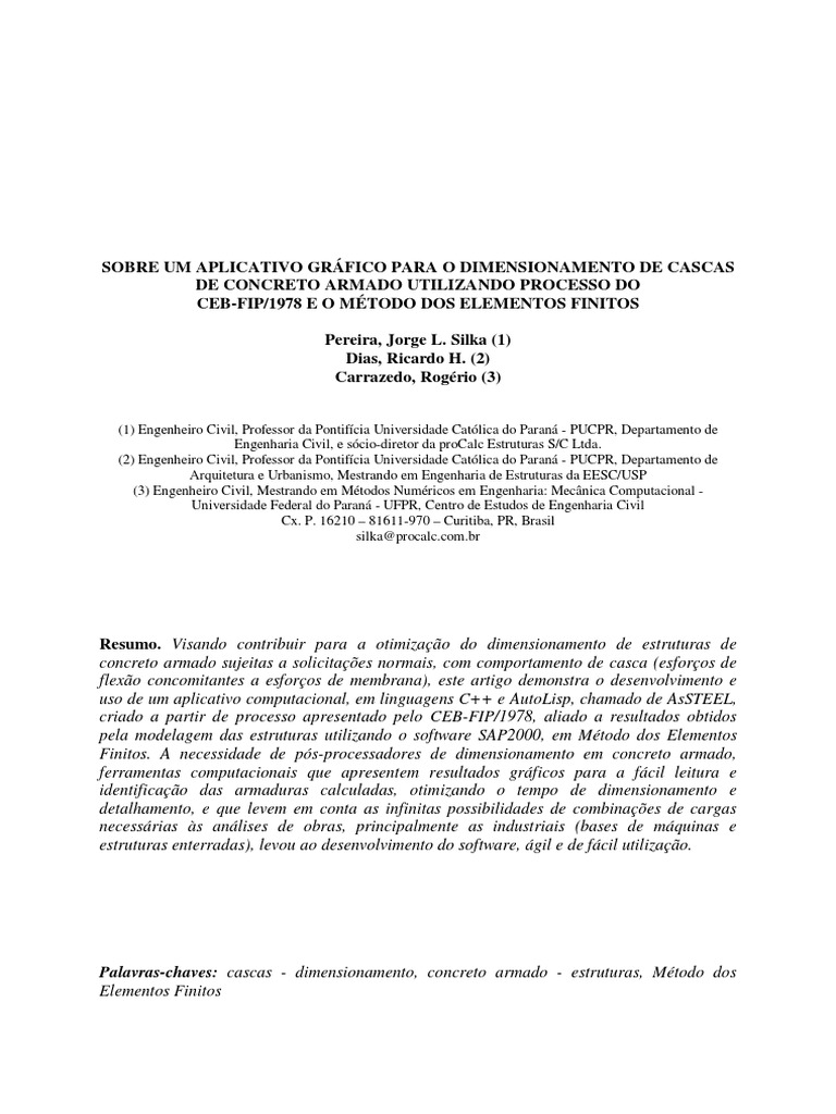 Dimensionamento De Cascas De Concreto Armado Estresse