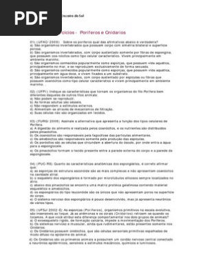 Lepaf 4ª Feira De Cinza 2ºano Poríferos E Cnidários Pdf