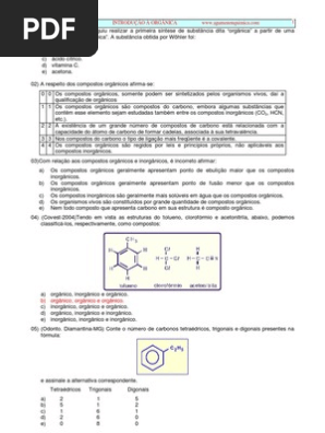 Exercícios De Introdução à Orgânica Profº Agamenon Roberto