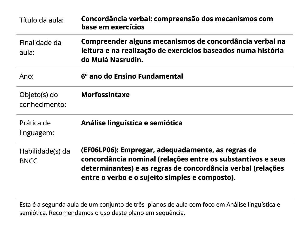 Plano De Aula 6º Ano Língua Portuguesa Concordância
