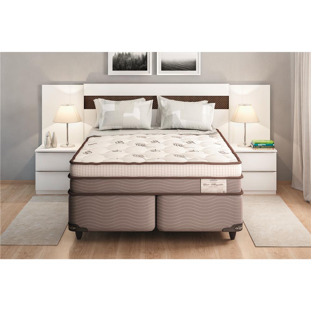 Cama Box Queen Size Colchão Ortobom New Magestic Com Molas Ensacadas 68x158x198 Cm Marromcinza