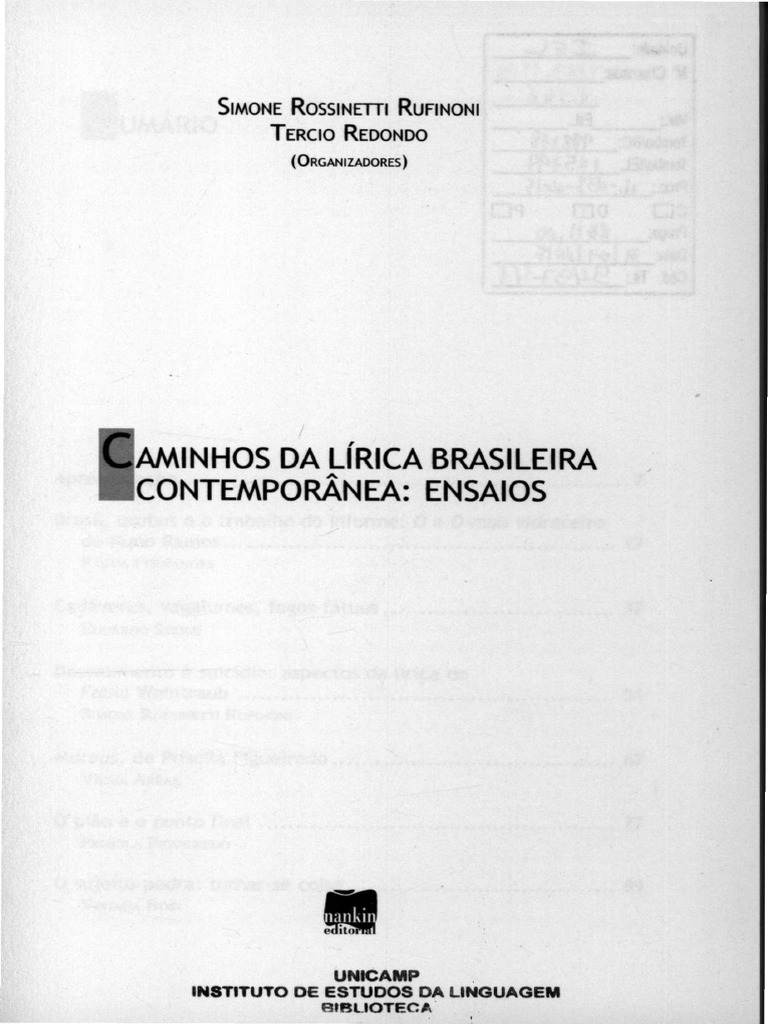Caminhos Da Lírica Brasileira Contemporânea Sterzi Simon