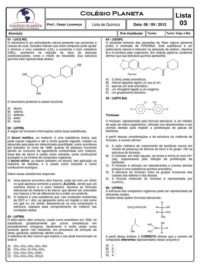 Exercícios Sobre Química Orgânica Questões Infoescola